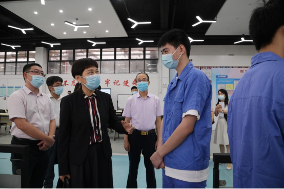 省人大代表吴玉菁在听取各方发言后表示,通过在东职院实地调研考察,看到企业真正走进学校,初步实现了产教融合成果各方共享,对职业教育的发展充满信心。她强调,职业教育要实现更高质量的发展,需要职业院校付出更为艰辛的努力,也离不开地方政府的大力支持和行业企业的深度参与。职业院校必须加强内涵建设,努力提升办学条件、师资力量、校企合作水平和宣传力度,不断提升学校办学层次。就职业教育遇到的困难,她表示将积极向有关部门沟通建议,加大支持力度,促进广东省职业教育高质量发展,为经济社会发展提供更多技能人才支撑。