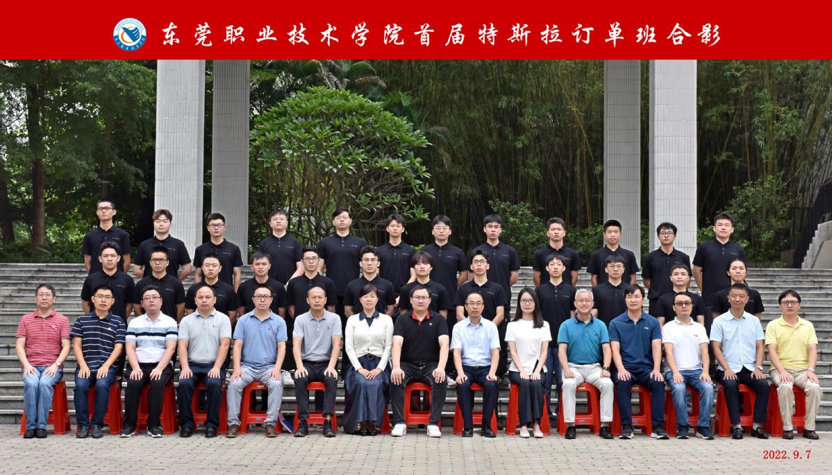 为深入推进校企合作,搭建协同育人平台,9月7日,东莞职业技术学院-特斯拉(上海)设备维修技师班(以下简称“订单班”)在东莞职业技术学院(以下简称“东职”)举行了开班仪式。东职校长贺定修及该校相关领导,特斯拉(上海)有限公司校企合作项目经理曾晨晨、培训经理叶健文,与首批订单班的28名同学参加了开班仪式。